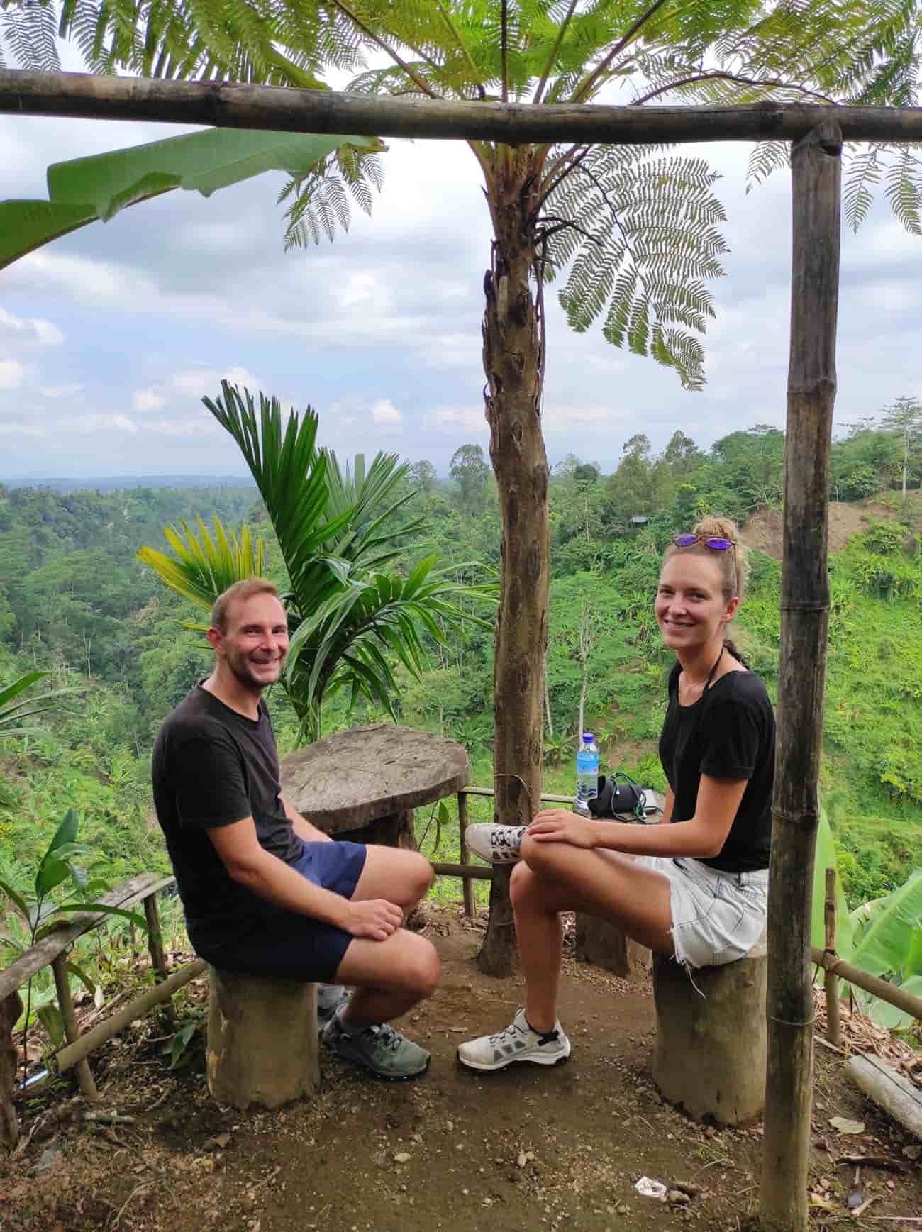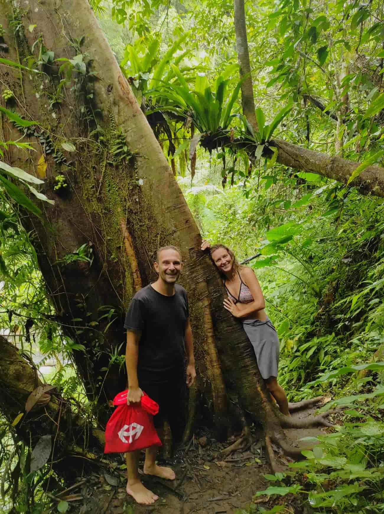 The tour starts at Resta Tropis accommodation and ends at the waterfall parking area, where lunch is served and the program concludes.